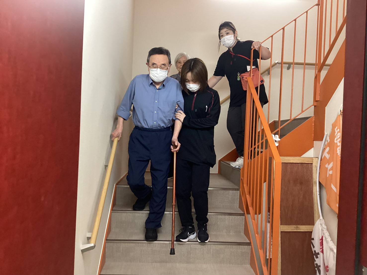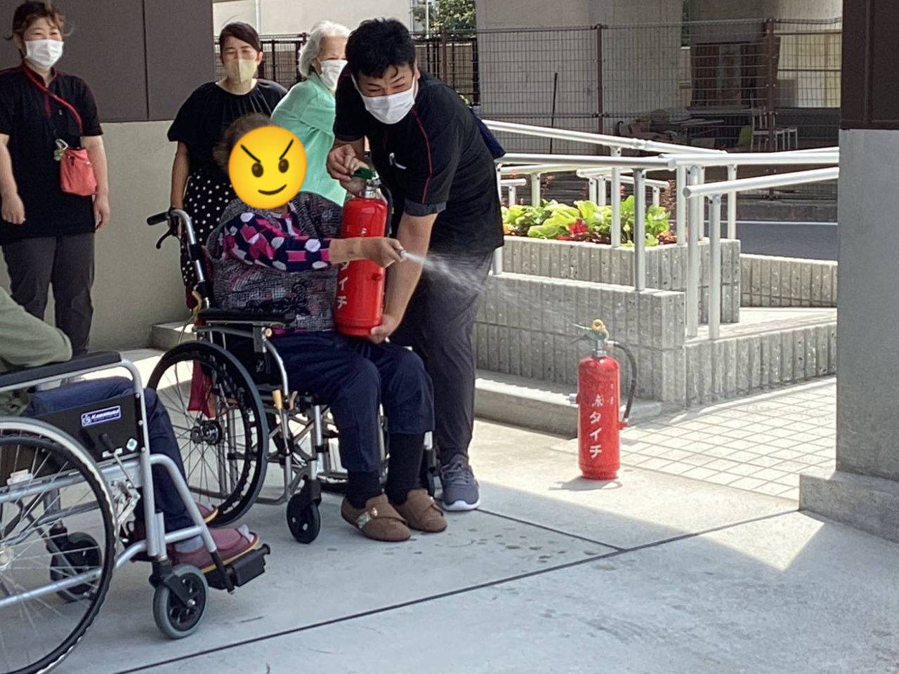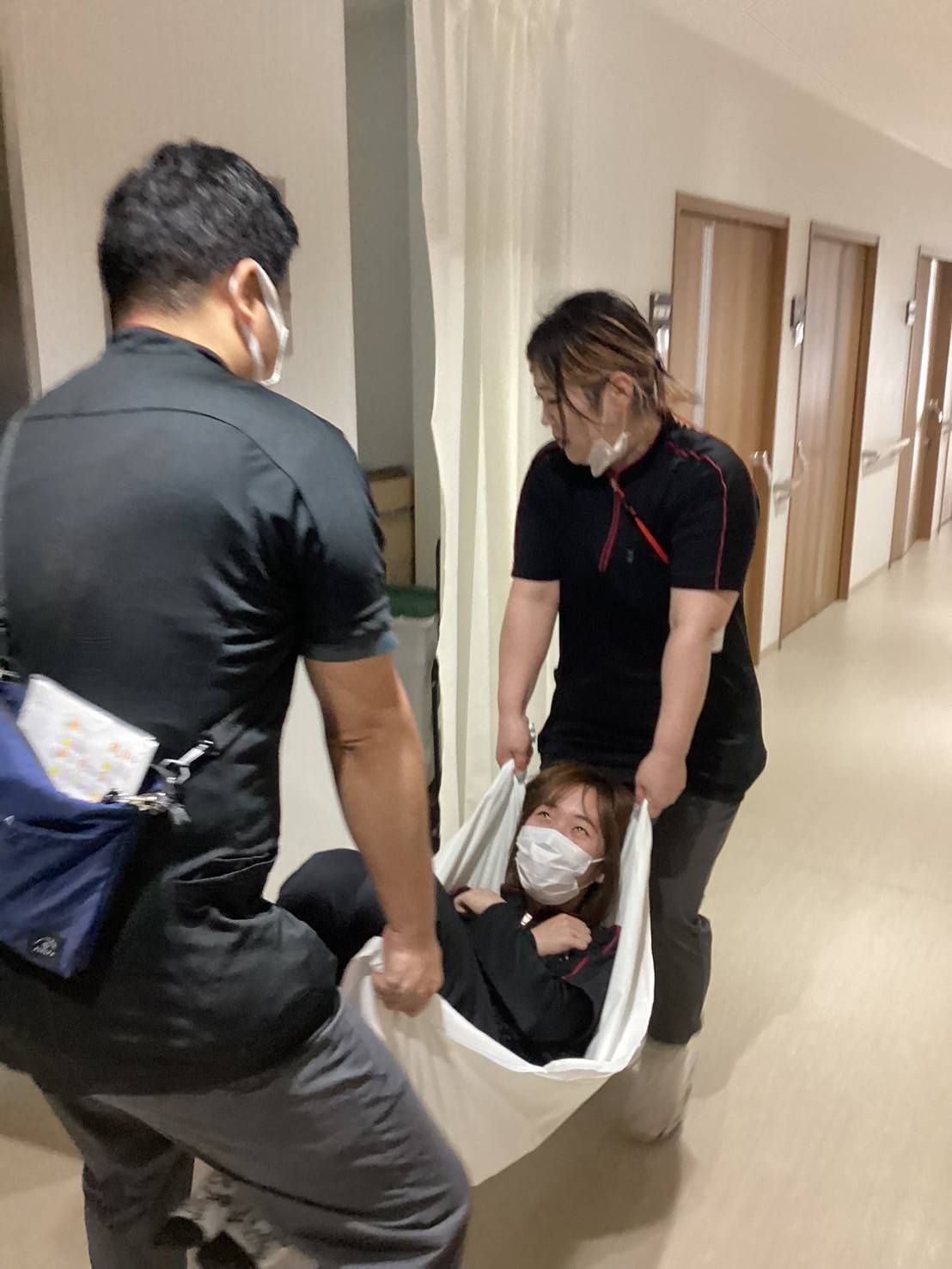 特に車椅子をご利用の方や歩行が困難な方を安全かつ迅速に避難させるための手順は、非常に重要な訓練となりました!