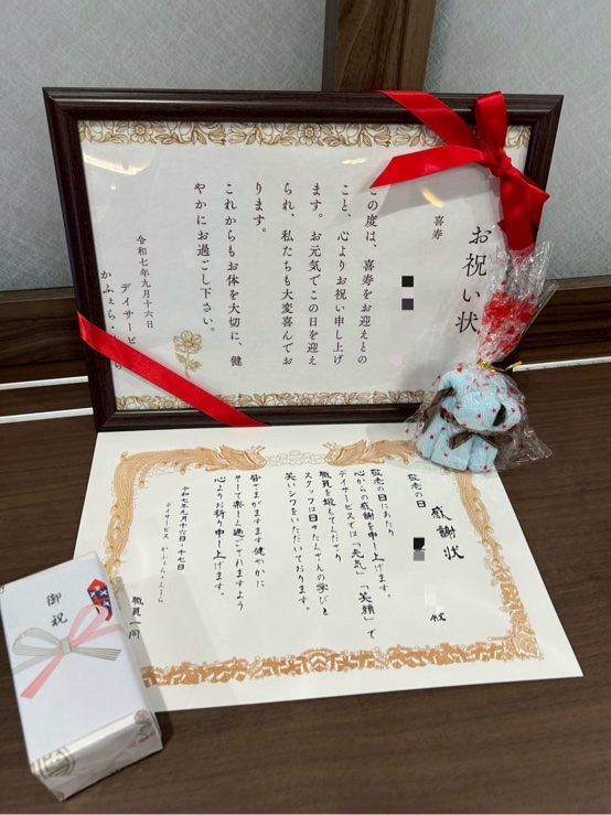お一人おひとりにお祝い状をお渡しすると、涙を流して喜んでくださる方もおられ、私たちスタッフも胸が熱くなりました😂