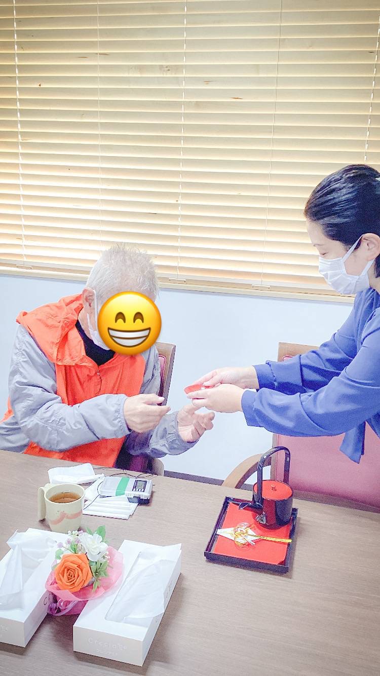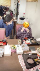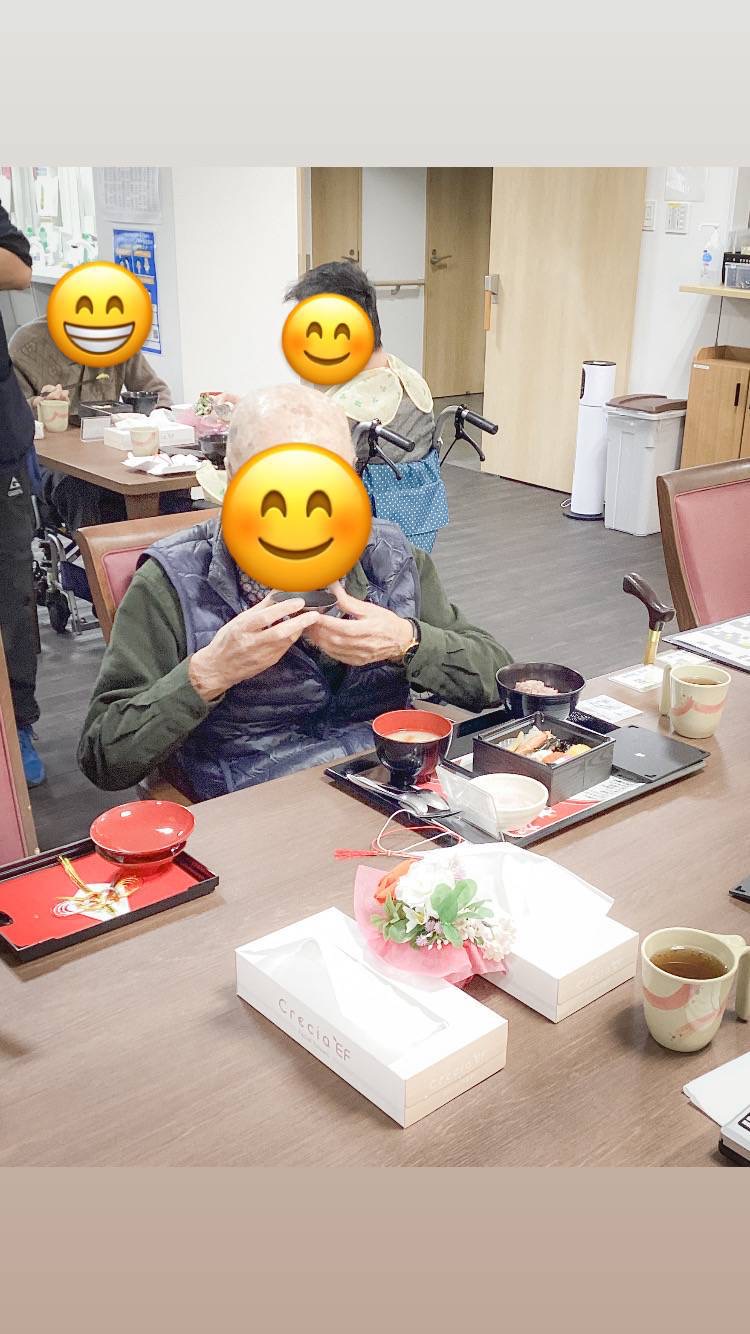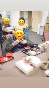 お食事と共に、新年の無病息災を願う「お屠蘇」も皆様に振る舞われました。 スタッフがご入居者様お一人おひとりの元へ伺い、改めて新年のご挨拶🎍