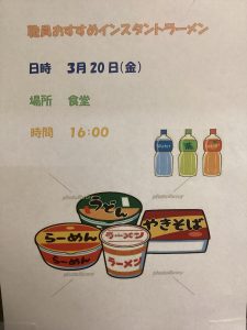 食事には職員が厳選したこだわりのカップ麺がずらりと並びました🍜🍜🍜✨